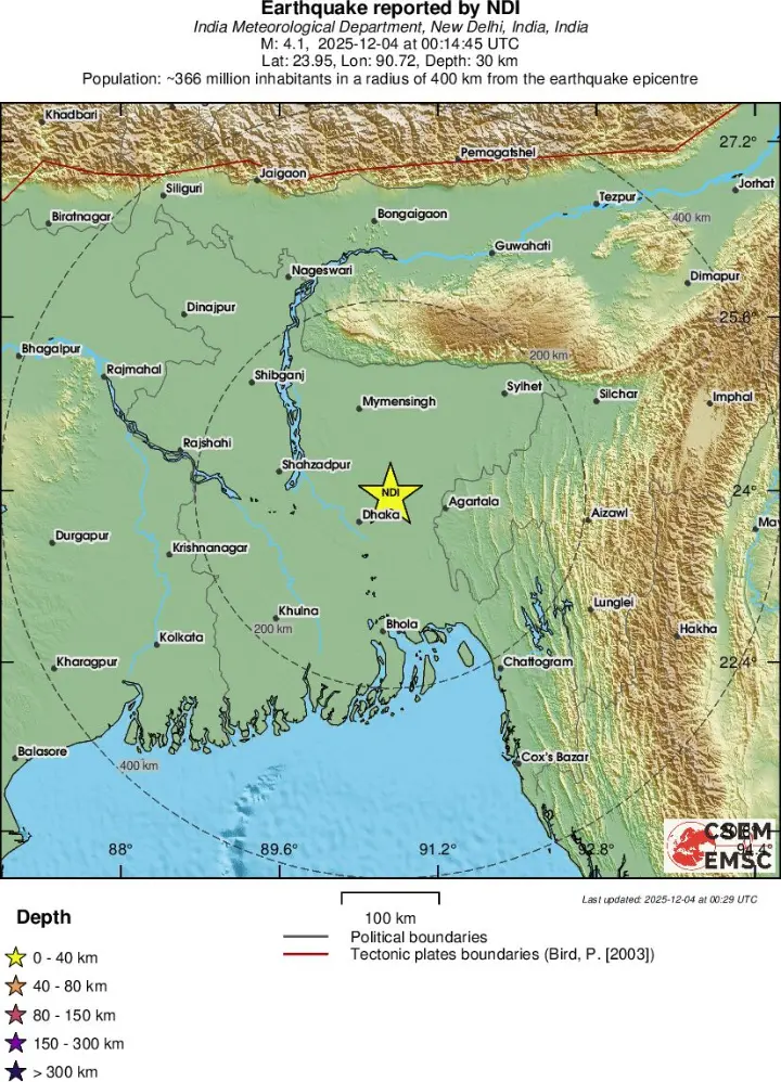 Map of the Narsingdi earthquake (Source: Euro-Mediterranean Seismological Centre)